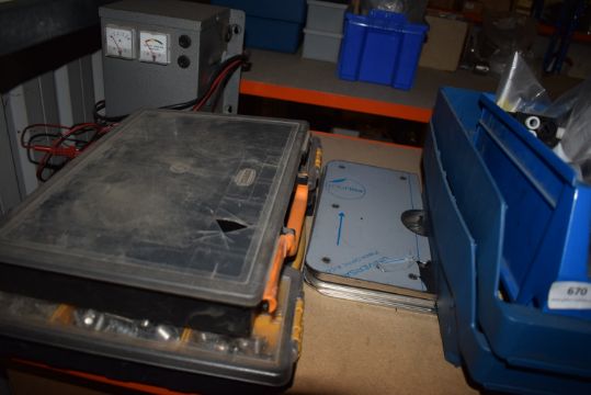 *Assorted Stainless Steel Plate, Flanges, Component Trays, and a Battery Charger