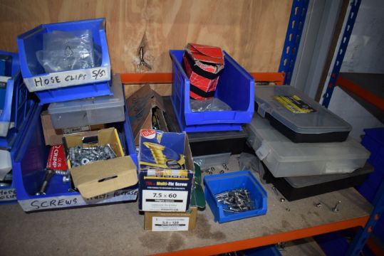 *Contents of Shelf to Include Assorted Cable Clips, Hose Clips, Multi Fixing Screws, Nails, Wood Screws, etc.