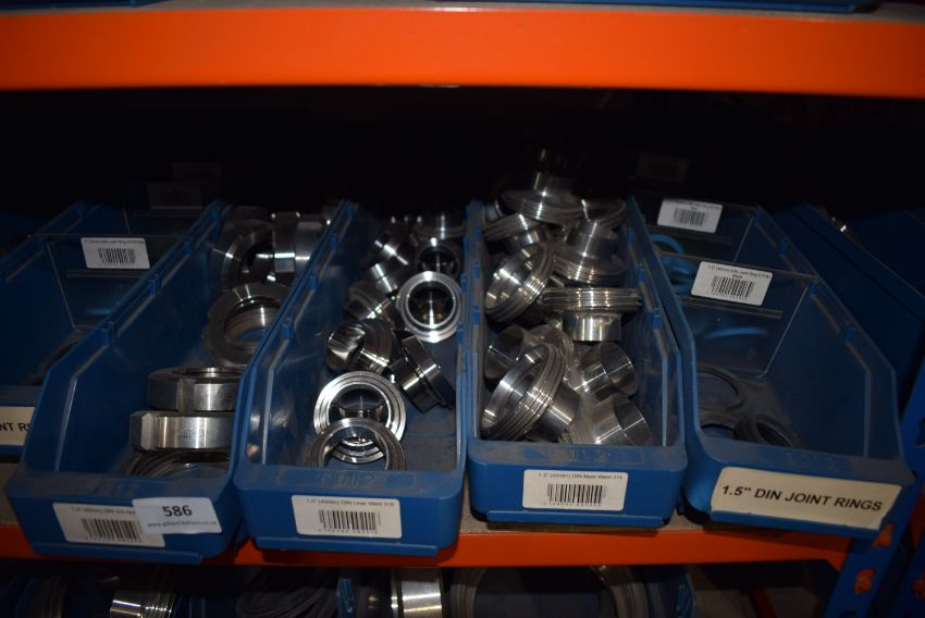 *Eight Trays of 1” - 1.5” DIN Stainless Steel Pipe Fittings