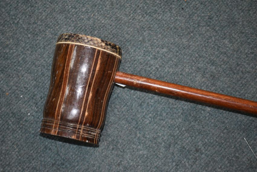 Eastern Carved Wood Drum with Dragon Design