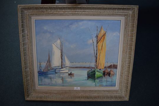 Acrylic on Canvas Mediterranean Coastal Scene by Andre Farault, Image Size: 53cm x 45cm