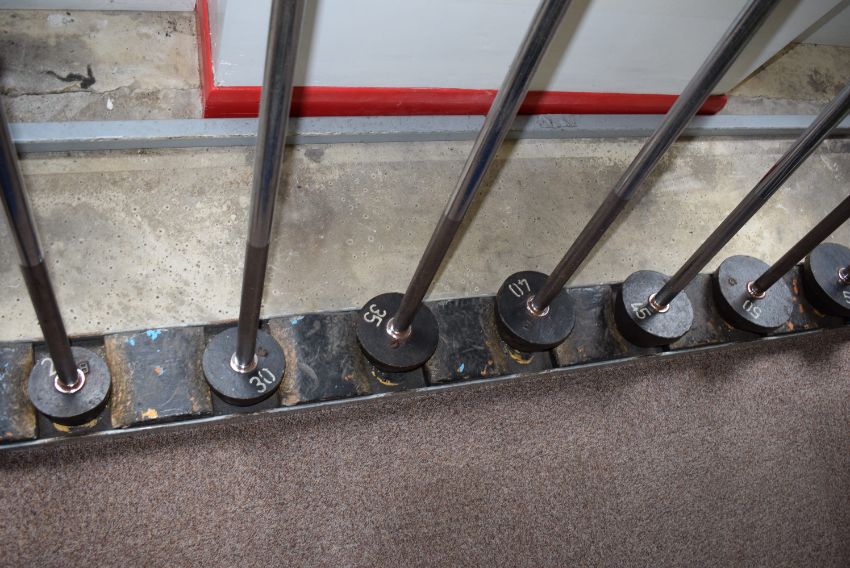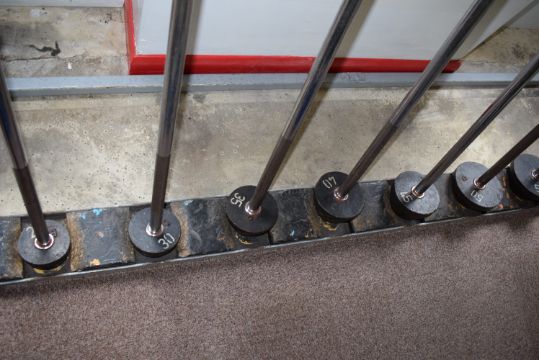 Set of Sixteen Weight Bars 25kg to 100kg with Two Stands