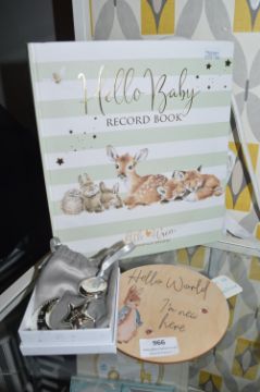 *Little Wren Hello Baby Record Books, Silver Plated Moon & Stars, and a Rabbit Plaque