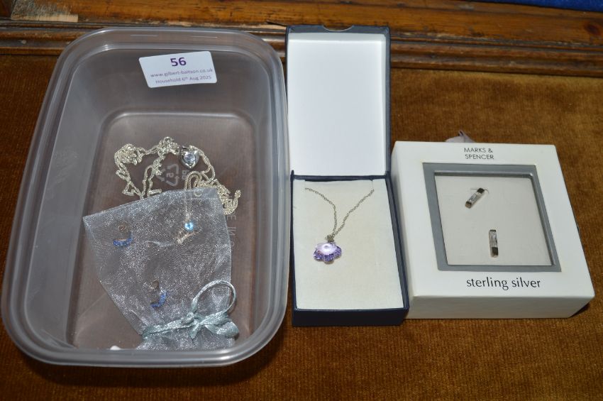 Assorted Sterling Silver Earrings, Pendants, and Chains