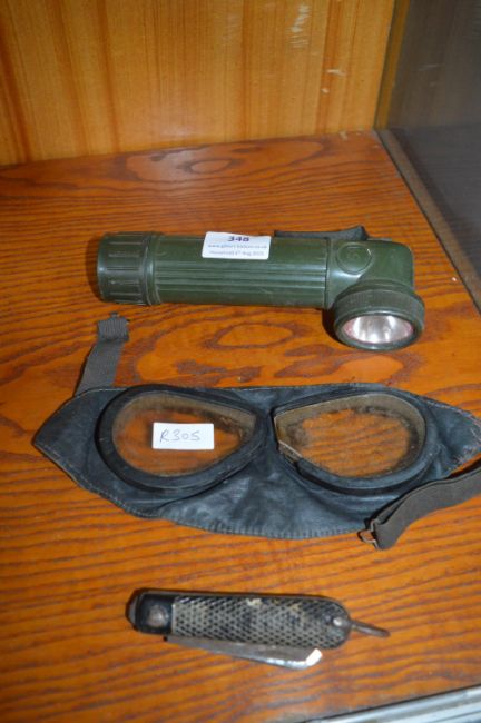 Vintage Goggles, Penknife, and a Torch