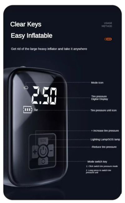 BRAND NEW & BOXED Digital Electric Car Tyre Inflator Pump Portable 150 PSI Air Compressor • This air compressor is a compact size, making it easy to store in your car or at home. • Portable tyre inflator has 4 preset inflation modes for car, motorbike, bike and ball as well as a custom mode. • The pump features multiple safety protection including precise digital pressure measuring and auto stop. • You can choose from 4 different units of measurement:- PSI, KPA, BAR and KG/CM • This is powered from your cigarette lighter - it is not cordless Features: • Easy to operate • Built in Pressure Gauge. • Convenient 12V cigarette lighter plug power source which means you can inflate your tyres on road. • automatically shuts off when the set psi is reached. • Light-Weight and Portable • Muti-Functional: cars, bicycles, motorcycle, inflatables, or balls with different nozzle adaptors; • With the LED emergency light, you will be able to work in the dark. Specification: • Material: Plastic ABS • Working voltage: DC 12V • Max air pressure: 150PSI • Power Cord Length: 3m • Weight: 0.5 KG • Product Dimensions:12 x 8 x 5.5cm • delivery cost £5 by royal mail or collection from ng32 2ag
