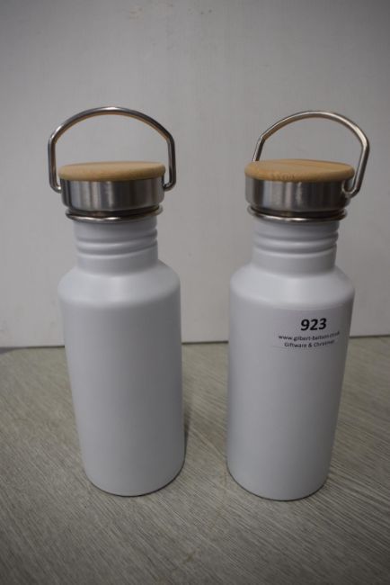 *2x White Thermos Flask with Bamboo Top