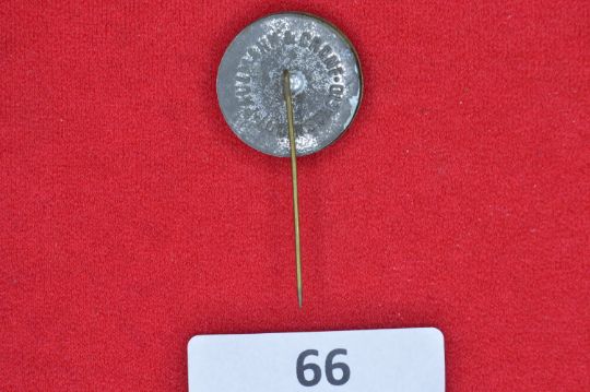 A small enamel stickpin with green oak leaf design and the inscription "Schützt die Familie – Wir Opfern" (“Protect the Family – We Sacrifice”).