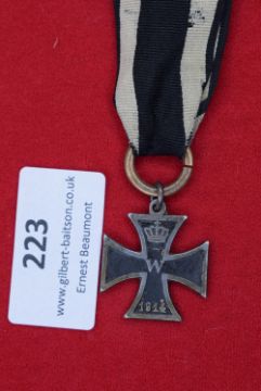 Imperial German 1914Iron Cross, 2nd Class, with original black & white combatant’s ribbon, chain, and clip