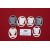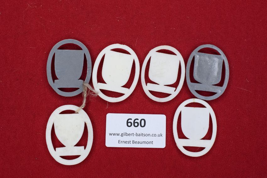 Six WHW plastic city crest badges in mixed colours, including Graz (grey), Luxemburg, Innsbruck, Wien (grey), Brünn, and Metz. All with suspension loops, some with string still attached.