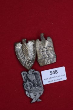 Three German Third Reich day badges. Including an SA Gruppe Niederschlesien 1939 badge with soldier and cogwheel motif; an Isenach 1935 Treffen badge with eagle and swastika; and an SA rally badge featuring a profile of Schirach. Each with pin-back fasteners, varying finishes.
