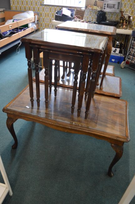 Nest of Three Glass Topped Tables, and a Glass Topped Coffee Table