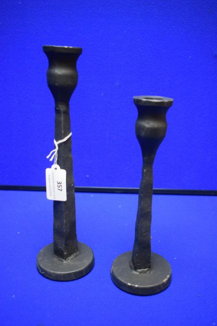 2x Cast Metal Candlesticks