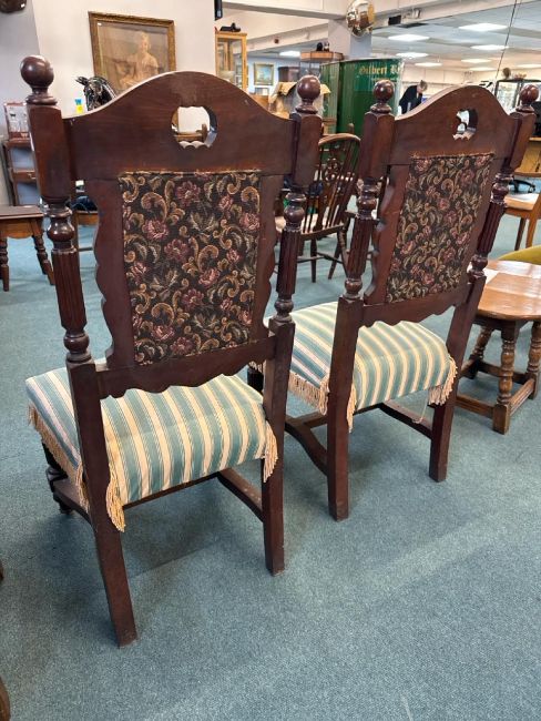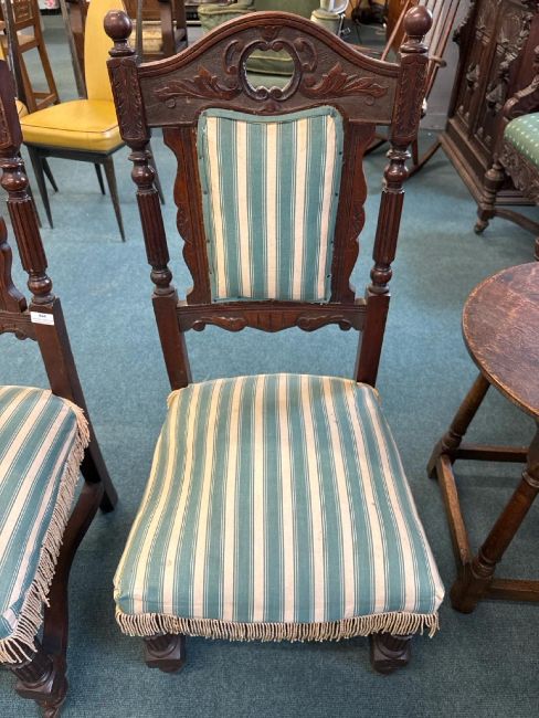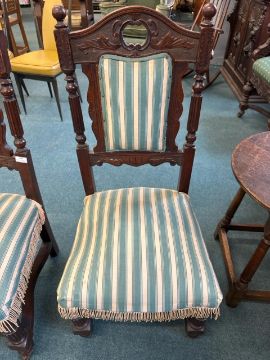 2 x Victorian Parlour Chairs with Carved Walnut Frames and Stripped Upholstery