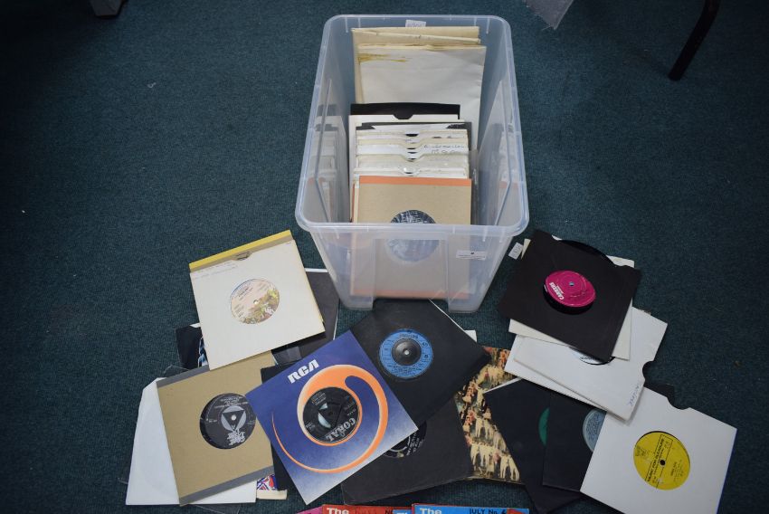 Collection of Beatles Singles and Ephemera Including the Beatles Monthly Book, Posters, etc.