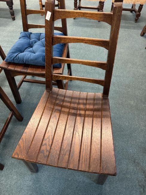 Set of Four Ladderback Dining Chairs with Tie on Blue Cushions