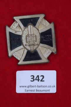 Kriegsgeschädigten-Treffen Badge, Breslau 1934 – A pressed metal cross-form badge with enamelled arms, central sword over oak wreath, inscribed “KRIEGSOPFER-TREFFEN BRESLAU 3.6.1934” and “2. OSTD.”