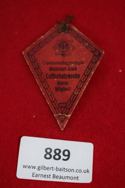 German Day Badge, RLB (Reichsluftschutzbund), Luftschutzwoche, Höchstadt-Aisch. Paper construction.