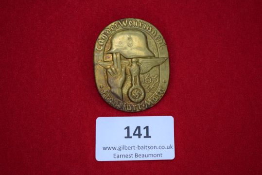 Sports Meeting Badge, a large gilt badge for Sportwehrmacht Frankfurt/Main, 1630–1930, featuring helmet, sword and eagle.
