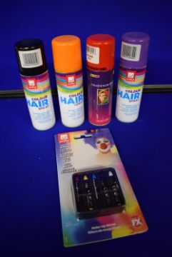 4x Coloured Hair Sprays and 1x Pack of Make-Up Sticks