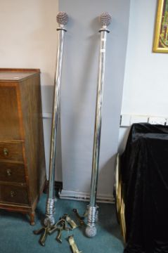 Pair of Decorative Chrome Curtain Rods, and Solid Brass Wall Mounts