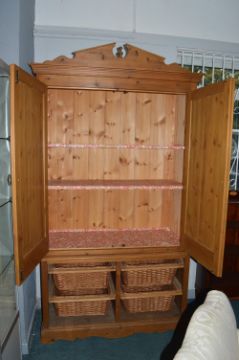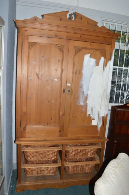 Large Pine Two Door Kitchen Storage Cupboard with Lower Baskets (has been test painted)