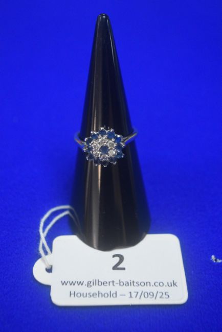 18ct White Gold Diamond & Sapphire Cluster Ring 5g