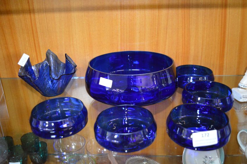 Blue Glass Bowl and Dishes
