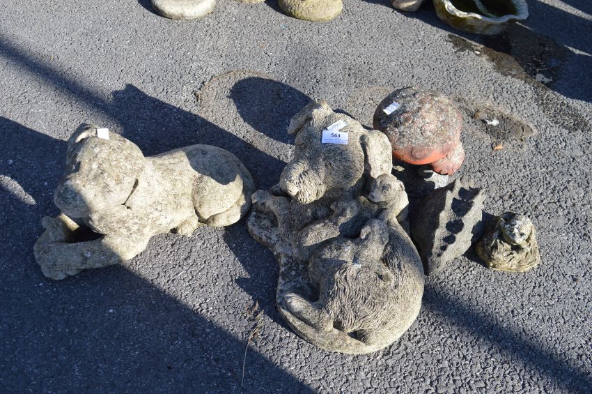 Concrete Garden Statues Including Dogs, etc.