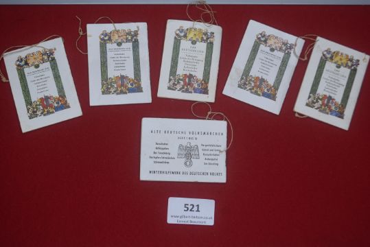 A group of WHW (Winterhilfswerk) miniature booklets including Das Deutsche Lied song collections (folk songs, soldier songs, love songs, children’s songs, etc.) and Alte Deutsche Volksmärchen fairy tales (Sleeping Beauty, Red Riding Hood, Hansel and Gretel, Snow White, etc.), with illustrated covers.