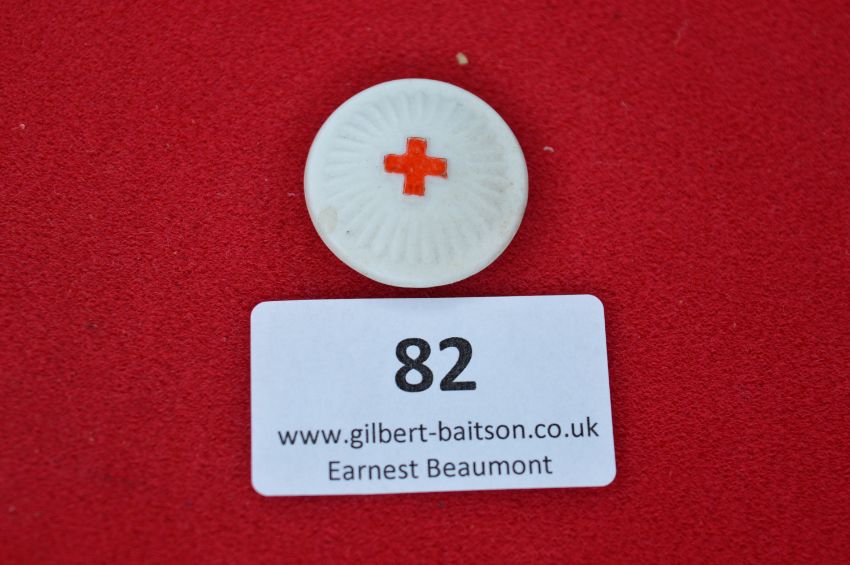 An East German (DDR) Red Cross commemorative medallion, white ceramic issue with central embossed red cross within radiating sunburst design, plain reverse with impressed markings; an unusual Cold War era humanitarian piece.