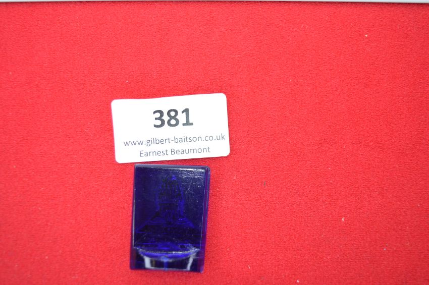 Glass Souvenir Plaque of the Völkerschlachtdenkmal – A rectangular deep blue glass plaque depicting the famous Völkerschlachtdenkmal (Monument to the Battle of the Nations) in Leipzig, showing the monumental stepped base and central tower. Inscribed beneath with title text.