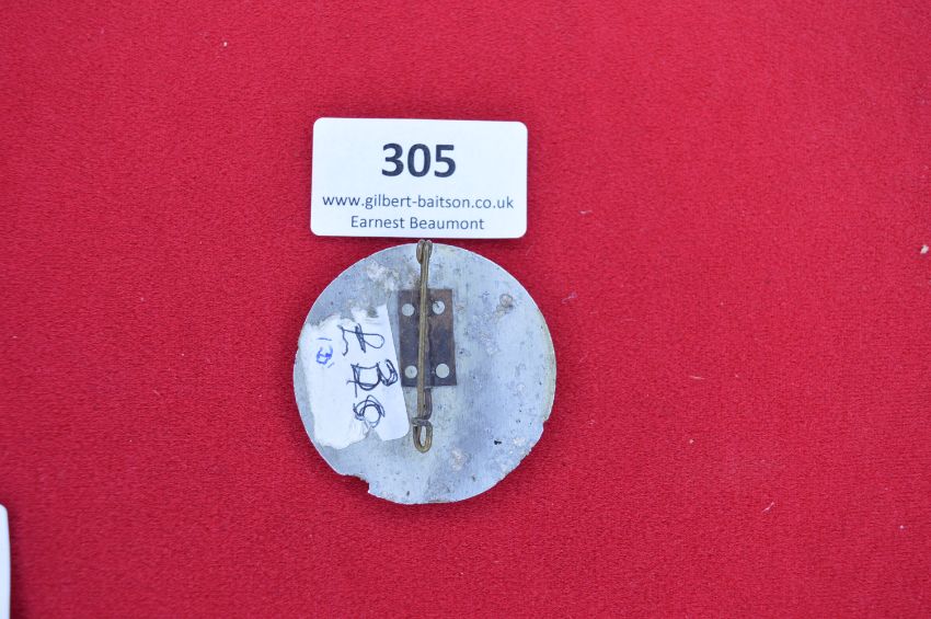 Circular Aluminium Badge “Fliegerhorst Kommandantur Ludwigslust” – A circular aluminium badge painted yellow, inscribed “FLIEGERHORST KOMMANDATUR LUDWIGSLUST” around edge, numbered 55. Reverse with pin fixing, showing wear and chipping.