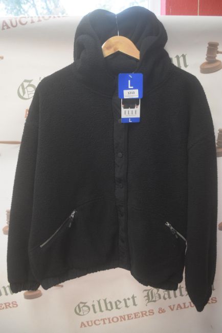 *Elle Sport Black Button Front Hooded Fleece Size: L