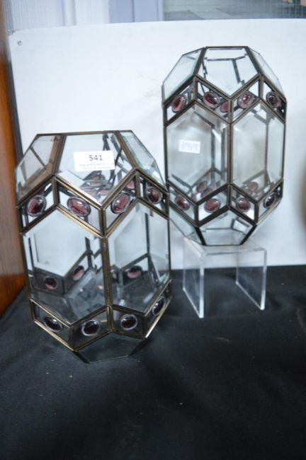 2x Decorative Bevelled Glass Lamp Shades