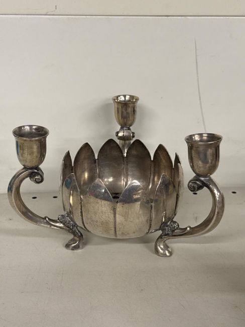 Vintage silver plated lotus flower centrepiece candle holder