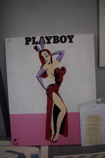 Playboy Bunny Girl stencil art on canvas by Pegasus signed 77x67cm