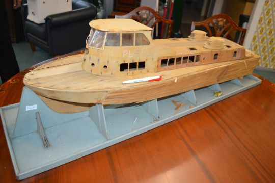 Hand Built Wooden Model PL4 Naval Vessel on Stand