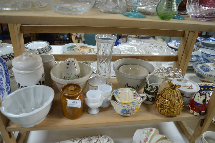 Assorted Kitchenware Including Flour Dispensers, Harrod Pot, Honey Jar, etc.