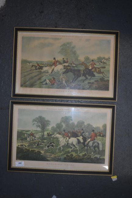 Pair of Edwardian Hunting Prints Herrings Fox Hunting Scenes “Breaking Cover” and “Full Cry”