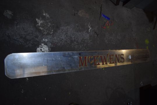 *Stainless Steel Bus Rear Plaque “McEwens” 69” long x 7” wide
