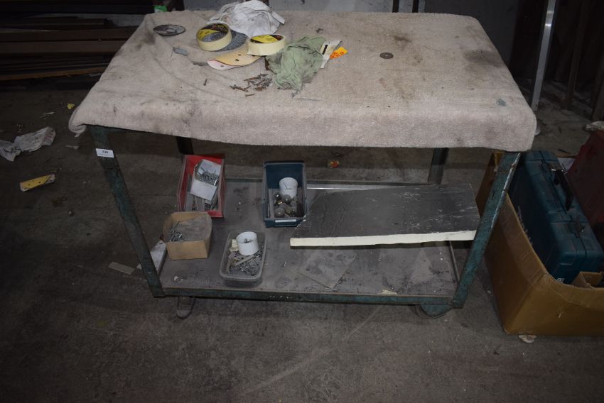 *Metal Framed Wood Topped Workbench on Castors 37”x21” x 31” tall
