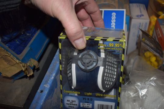 *Box of Assorted Masks, Ear Defenders, Earplugs, and Disposable Gloves