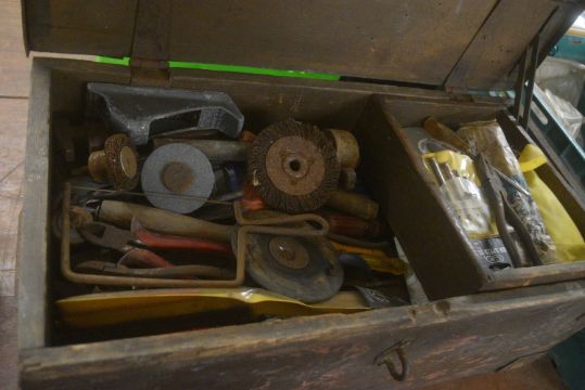 Wooden Tool Chest and Contents of Assorted Tool