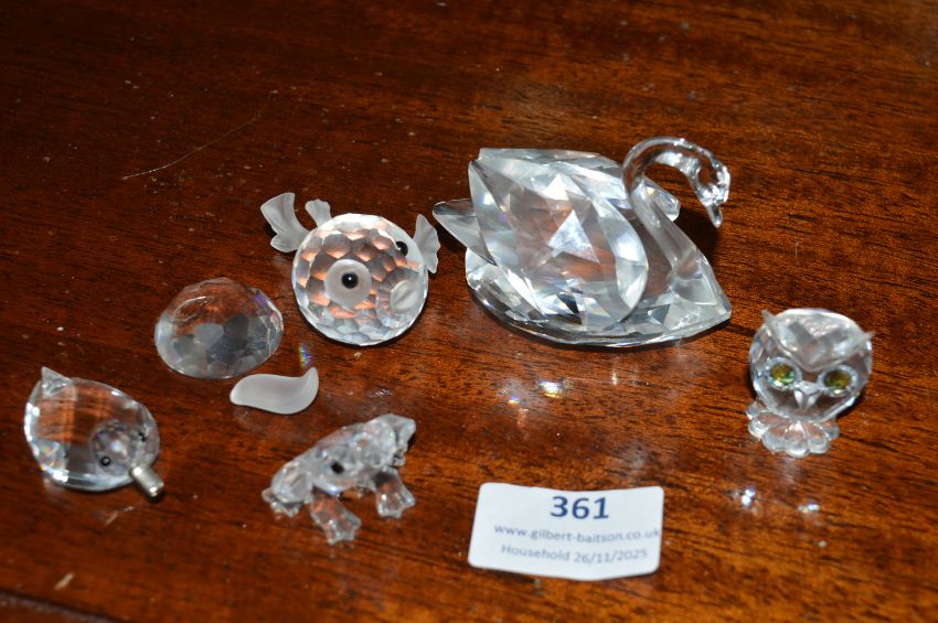 Swarovski Crystal Animal Figures Including Swan (some damaged)