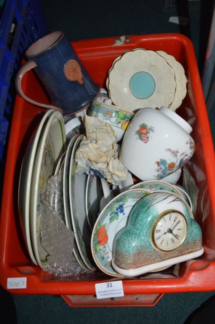 Assorted Pottery Vases, Plates, Clock, etc.
