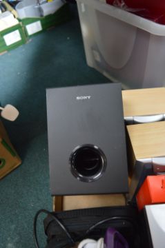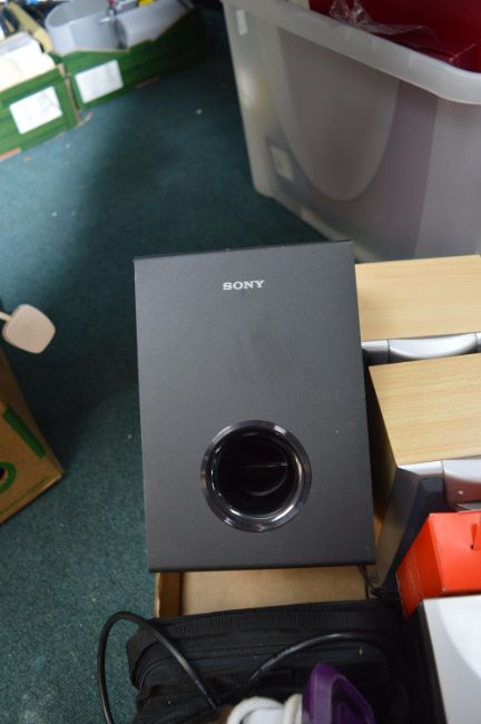 Box of Electricals Including CD Players, Radios, Projector, Speakers, etc.