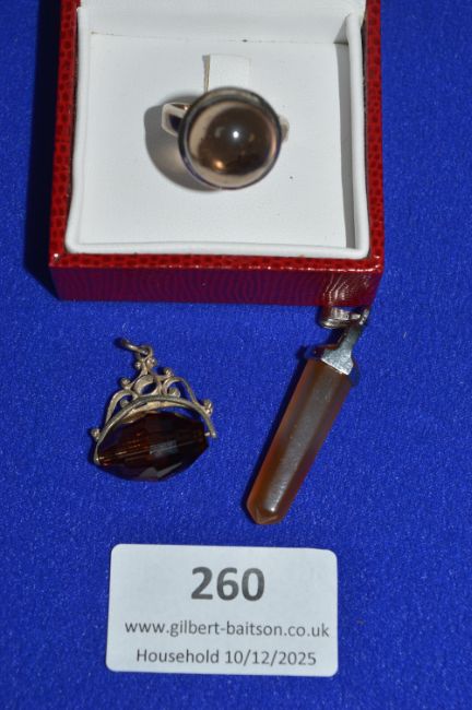 Smokey Quartz Silver Ring and 2x Pendant