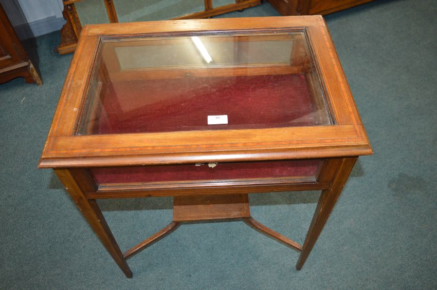 Edwardian Mahogany Inlaid Display Case with Bevelled Glass Panels