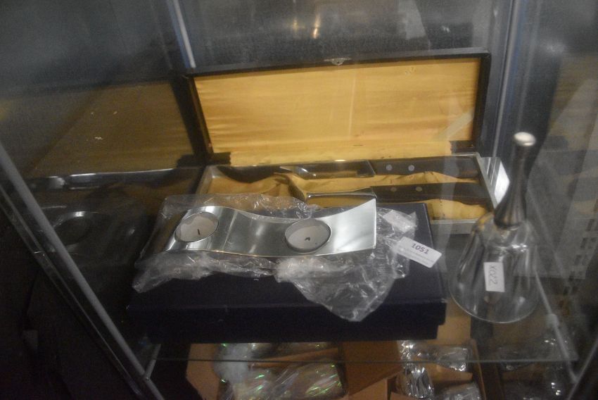 Carving Set in Presentation Box, Jasper Conran Silver Plated Tealight Holder, and a Lead Crystal Bell with EPNS Handle